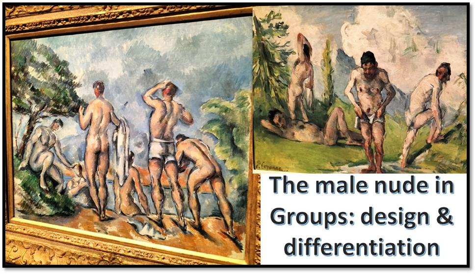 Hence it is the individual male nudes that stand out in this exhibition, especially my favourite one below, although the action of tentative stepping in the process of bathing seems a stock Cézanne trope for it occurs in the group example (the one on the right) above. We are less interest in a static take on male nudity but rather in the dynamism of male bodily motion, even in the most tentative of actions.[12]