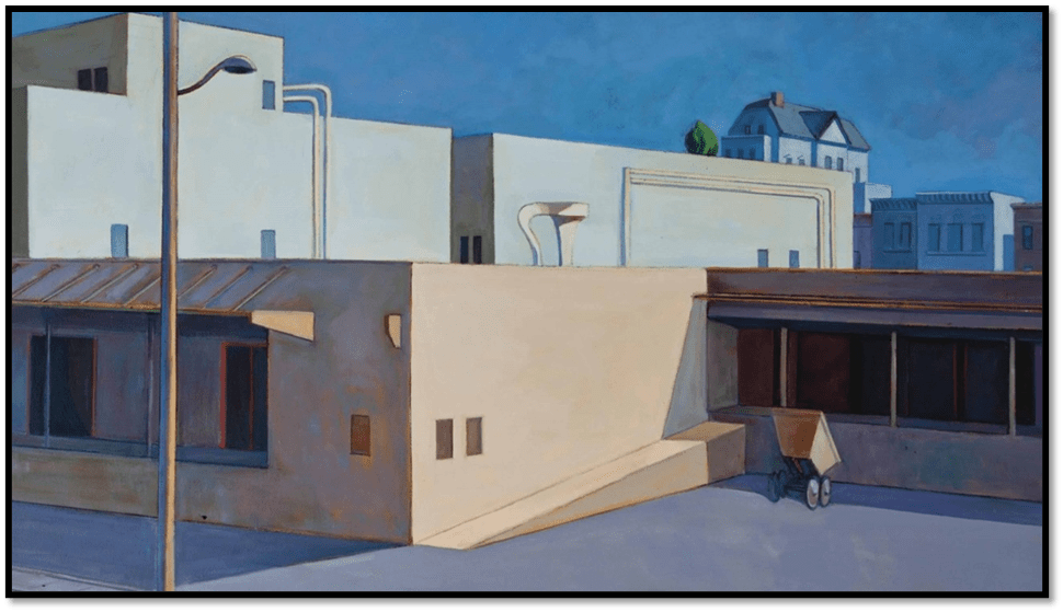 Two issue leap out in these interests. First they both seem interested in isolation – of things in a still life or the emptiness of a venue that should be full of life to perhaps mount a wider critique on object and production centred values. You decide, Secondly both use it to see why distortion matters in painting and why it is used. Brown said, as cited by Shields that all his pictures, thought he was speaking of these landscapes ;begin with distortion, which for me is a psychological necessity, something I create on purpose’.[18] The point may be for us. Yes, I see, But what is the purpose? I am just on the start of a journey with these painters but I suspect the purpose is to test the limits of the perceived real – and to enable us to see distortion is a matter of order, form and pattering of objects and figures in space, Those distances are determined by artifice not reality and hence art strains to show that queer vision is artistic vision, a vision that goes beyond the bounded categories in the world like male and female, straight and gay and into the reality of our variations. Artifice is not art but you can make an art out of artifice to make that very point.