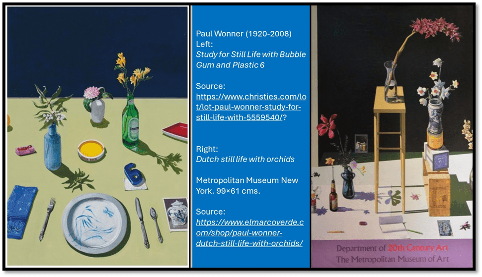 I just wonder at that beautiful painting. Wonner and brown are complex artists. They experimented with different signature genres. Bot used landscapes with figures as well as direct figurative groups and individuals but, for a period Brown became interested in industrial and urban landscapes so stilled they seemed distorted and surreal, as did Wonner become interested in still lifes stilled beyond even the Dutch models he looked at.
