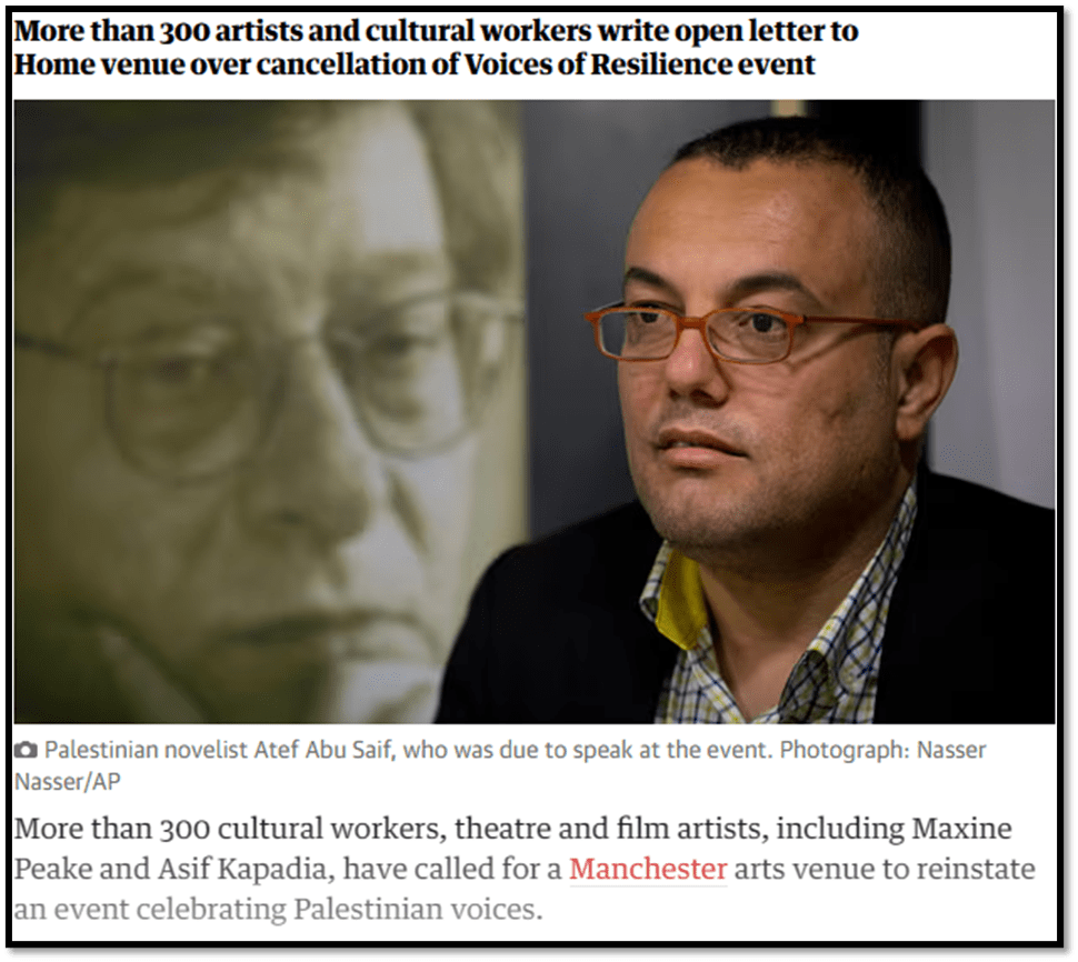 Haroon Siddique (2024) in ‘The Guardian’ online (Tues 2 April 2024 13.04 BST) Available at: https://www.theguardian.com/uk-news/2024/apr/02/manchester-voices-of-resilience-palestinian-voices-cancellation-open-letter-artists