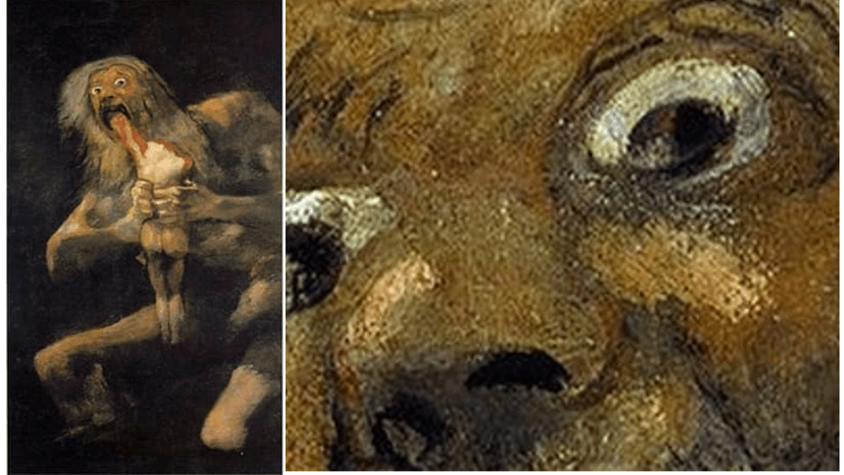 Gums, teeth, and more abstract processes like hunger and appetite, and their opposites: the nausea associated with gut responses leading to vomiting. How like are those latter processes Bloom, and Joyce, show us to those of ‘anger’ and ‘disgust’ that go alongside their super-expression in the fear of cannibalism, of what it might be like to consume the flesh of a human animal instead of a non-human animal or the dying fibre of vegetable tissue. We sense Goya here of Saturn devouring his sons lest they grow up to depose him, as inevitably they must:. After all, a ‘hungry man is an angry man’.