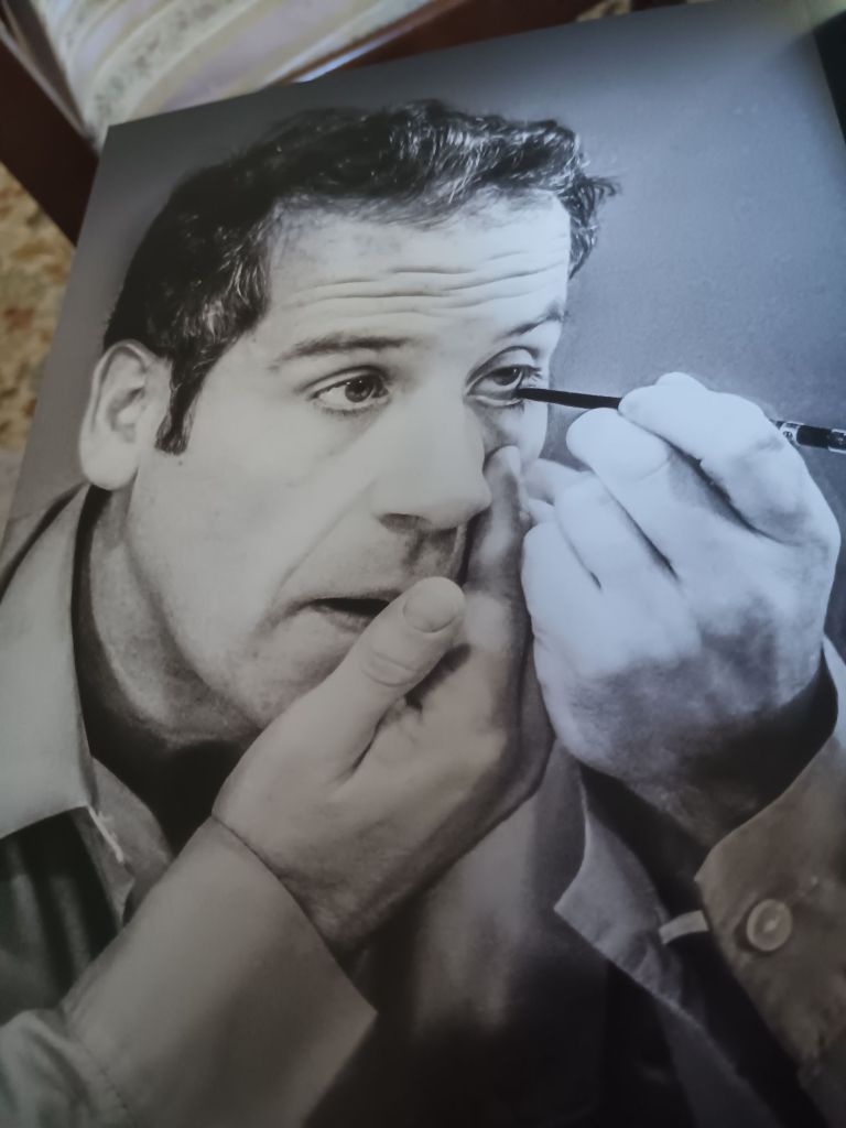 But I never, quite then, and still now to be honest, got over a taboo against men using cosmetic makeup in real life on their faces, when it is very common these days in young men whatever their sex, gender or sexuality self-identification. Though happy to make up for a role, offstage makeup remains a no, no for me. Even using moisturiser is a no, no. This shows I learned that not using makeup is also a kind of makeup and one I tried hard to master: a kind of subjection of the skin to hardening processes of exposure to environmental influences,natural and otherwise, to things that make any face, of whatever sex/ gender, rugged and less flexible, more soft to touch, appearance or exposure to labelling.