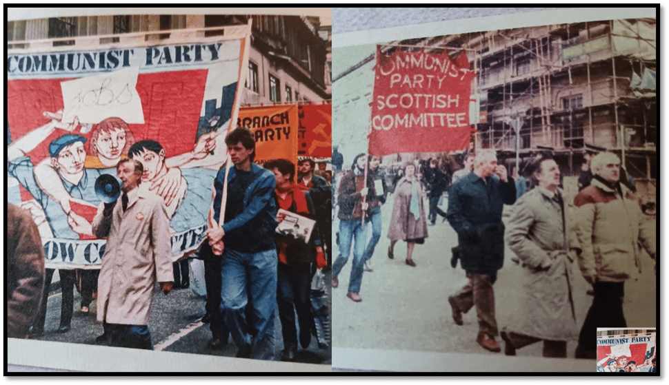 Such collectives gather together the differences in people, such that leaders and people join together in one march – and these, in the poem mean known and forgotten Socialist and union leaders, global Communist activists in numerous cause (from Rosa Parkes to Rosa Luxembourg) and allied artists and people in the provision of culture (as isolates like Peggy Seeger and perhaps Nina Simone) or in collective institutions of culture (like Harry Belafonte and, of course, Paul Robeson, for who the whole collection seems a bow of memory. And then there are the political party workers – passionate people rather than apparatchiks – including the poet Hugh MacDiarmid who pushed the pram of Jackie’s elder brother on a protest march) but also cultured people in the resistance movement to the status quo within both political parties and trade unions, like Gordon McLennan (still the Leader of the CPGB when I was in it), Jimmie Reid, Abe Moffat, and various nameless marchers in protest. Some of the names of the latter must be memorised because they died from the brutality of state weapon use whilst in peaceful protest like Nahel M. All this is to be mourned with the passing of Helen and John Kay, by being turned into collective action in order to ‘shatter this mosaic of sorrow’ against which we protest.[5]