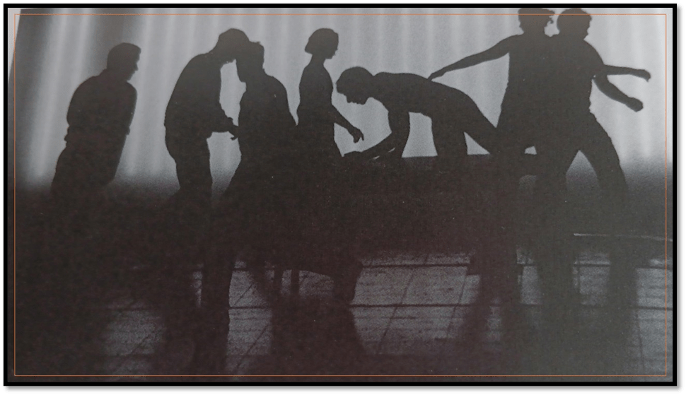 The stark black and white images of the original production, in photographs by Sebastian Hoppe convey the lightness of touch and some of the metamorphoses achieved by simple stagecraft (mime and motion, light, shadow and props forming shapes.
