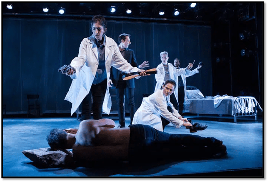 Simon McBurney first spoke the words quoted in my title in the production of this play at the Lyttleton Theatre in 2002, twenty-two years ago. Now he returns as its Director and when I booked, it was as heavily booked up already as it had been the first time round when Théâtre du Complicité were considered so revolutionary a team in drama creation that they became a French not an English theatre company. At the time, ideas that British theatre was moribund were rife. They speak OUT FROM Jackie Fletcher’s account in The British Theatre Guide’s online reviews of Théâtre du Complicité , which at that time seemed always to be labelled in full Frank French not in the unaccented (English) ‘Complicite’ on the play text.