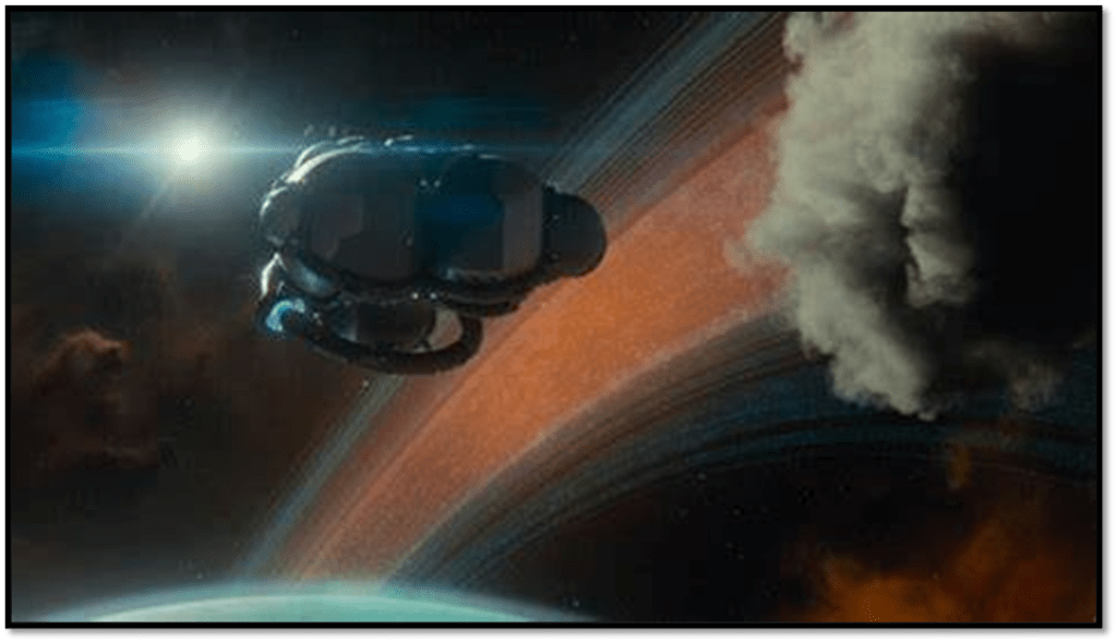 The SB space-station releases its pent-in smelly ‘fart-cloud’ of methane from its stored excretions to propel it onward to new developments.