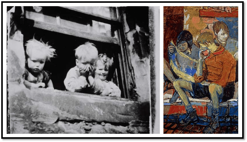 A photograph taken by Joan Eardley of tenement children and her ‘Street Kids’, Joan Eardley, 1949 − © Estate of Joan Eardley. All Rights Reserved, DACS 2015. All from: https://www.nationalgalleries.org/art-and-artists/features/story-scottish-art-joan-eardley