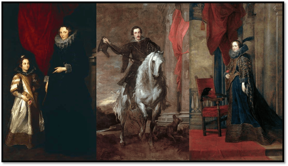 In my title I use contrasting statements from the early and later Degas in characterising how the artist conceived of the aesthetics and definitions of sex / gender in art. My first citation comes from Degas in 1859, as a young artist scoping and sketching the European art on a Continental grand tour, and obsessed by the work of the Italian Renaissance and the seventeenth century, lauding Giotto and feeling the pull of a monastic life. He arrived in Genoa where he said of paintings, ‘in light tones’ in the Brignole Palace that: ‘Nobody ever rendered the charm and finesse of woman, the elegance and chivalry of man, nor the distinction between the two, like Van Dyck’.[10] In the collage below the two pictures to the right and the left of the Count of Brignole may be those of his Countess referred to, though ‘light tones barely describes them’ if colour is the object described as light.