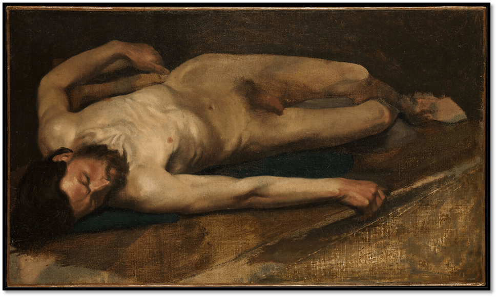 His painted male nude of 1856, however, is very unusual, as if it were more certainly than the above, a painting of an anatomical copse before it is worked upon, an exceedingly broken virility:
