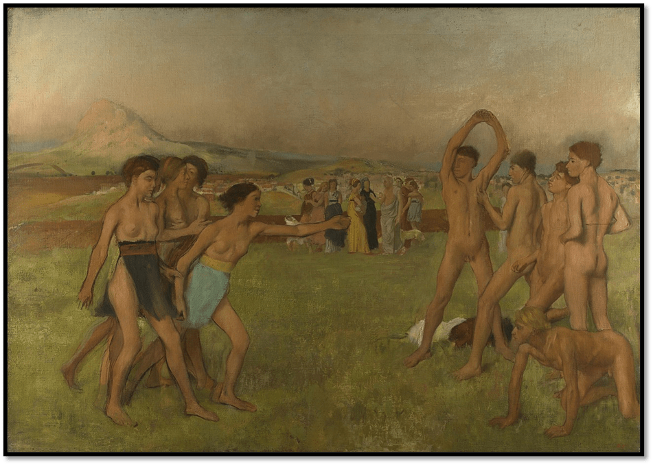 After I look I find myself saying: is the artist a man? Am I? Is that indeed the kind of question hanging between the Spartan youth in that famous earlier Degas painting. Moreover, if I were either or both a man and woman would it determine what I want, which Freud used to think only a question to answer in relation to women. It would not, of course, for Degas knows what Winnicott knows; that sex/gender is realised in dreams, and artists dream in loud colours. Perhaps he was right to be clear that he differed from Oscar Wilde, as I read it, only in the desire not to well-known: even to himself: