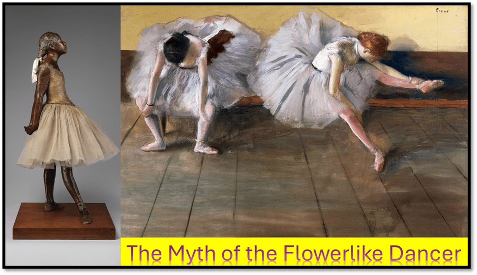 The evidence might,in this light, make Degas (and so it seemed to me) seem ‘retrogressive, aligning him with the tradition of the Ecole des Beaux-Arts’. Such a view ignores I now see the work of Cézanne and Gauguin in this area (and that was obviously unwise and ignorant of me). People who subscribe to this view often also see Degas as moving from subjects in everyday life to the stock topics of the artist – the female nude and ballet – in his later work.