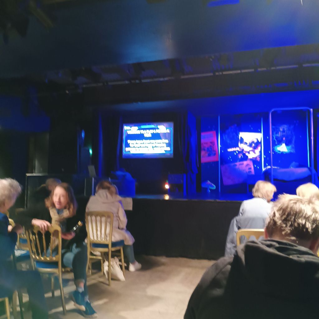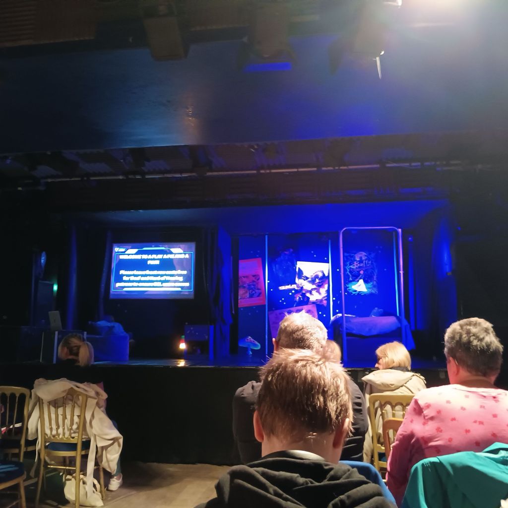 The play itself was just shy of an hour long and set in their upstairs bedsit room, in their mother’s flat of Wiley played by Bea Webster. The play opens in a British Sign Language (BSL) recreation of a game of Dungeons and Dragons (DnD), for this us how Wiley fills their time, creating scenarios filmed for display on social media.