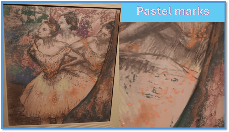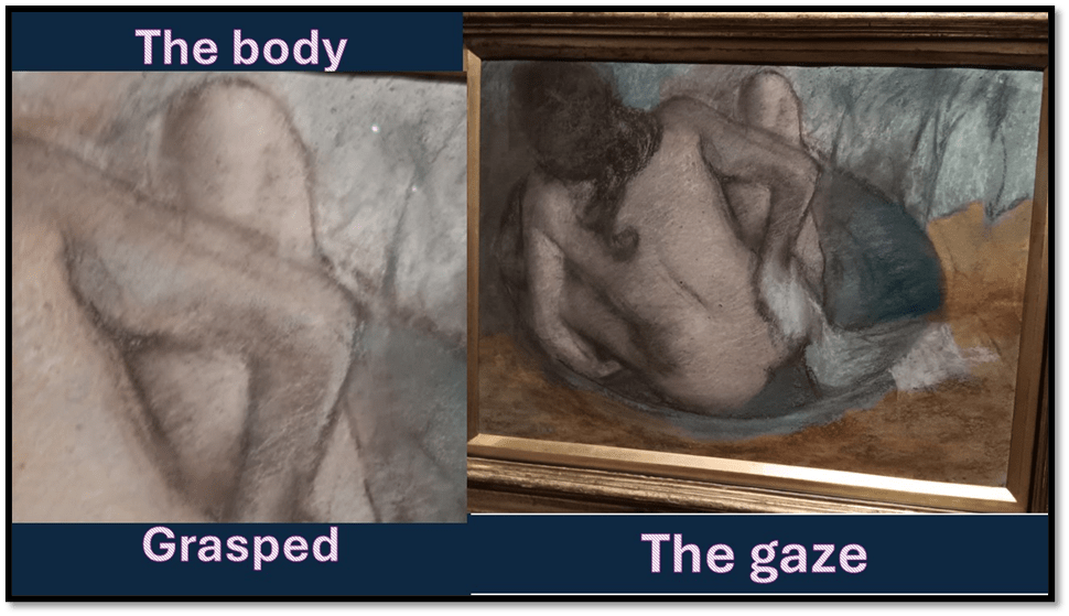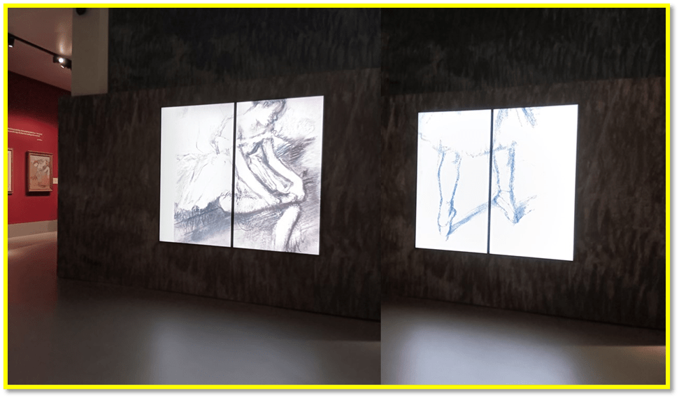 Let’s end by praising how this exhibition used animations to help us see how the layered application of pastels and the replication of forms (sometimes sequenced forms) created the characteristics of how Degas manufactured form and design effects. All in all this was a great experience.