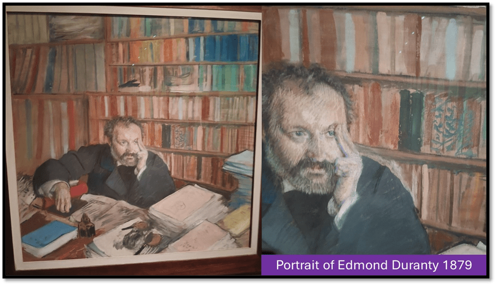 Degas’s study of men who are in some way in the arts have a similar interest in absorption. Below is the large Portrait of Edmond Duranty (1879, Gouache and pastel on linen, 100 x 100.4 cm).