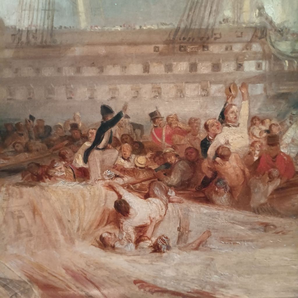 Much of the exhibition tells the story of The Temoraire, particularly at Trafalgar. Turner’s scene is rather overpopulated for one whose figures always seem to me to not really believably part of the place and space they inhabit.