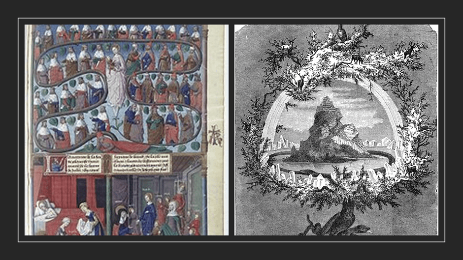 The Tree of Jesse and the Life-Tree Yggdrasil. Mythic representations of a world order or multi-generational family trees..