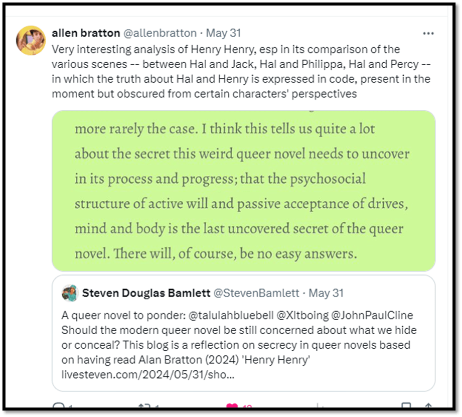 It was clear to me that 1 Henry IV mattered too as a book that between us, Bratton and myself, tried to make sense of as men growing up queer, though my experiences matched those of the novel’s protagonist, Hal, not at all. There were moments when I sensed I had a bit of his Jack Falstaff about me, though. Here is the blog via a link on this sentence.