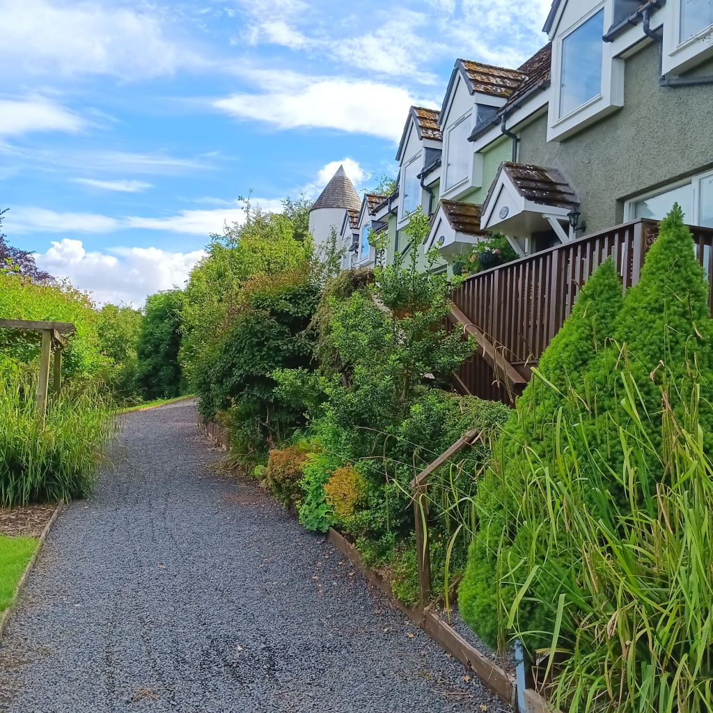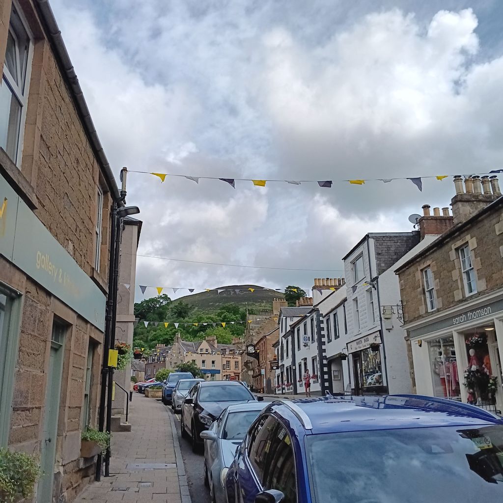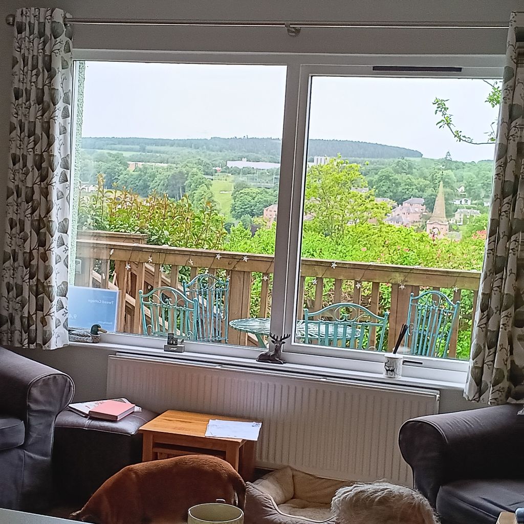 We are here at our holiday cottage, and yesterday all looked lovely, with blue skies and sunshine, with even Daisy snuffling around. The sim to see events at Borders Book Festival.