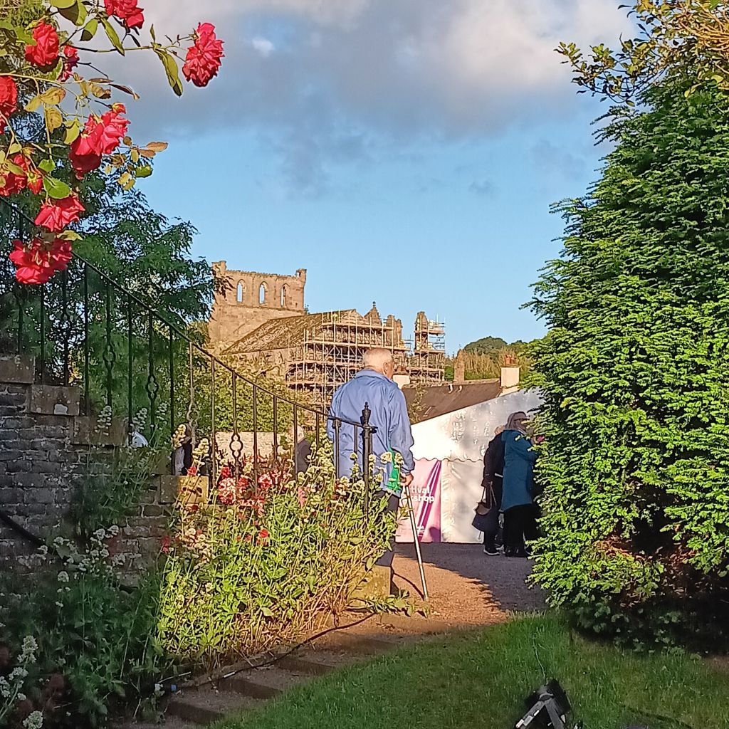The weather had changed and in the Harmony Gardens, looking for my Shepherd event, the sky was blue and the sun in a mild breeze was a blessing. Melrose Abbey shone in the background.