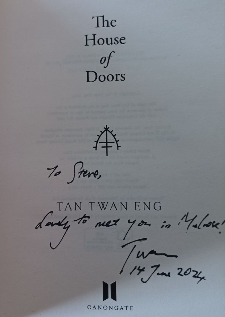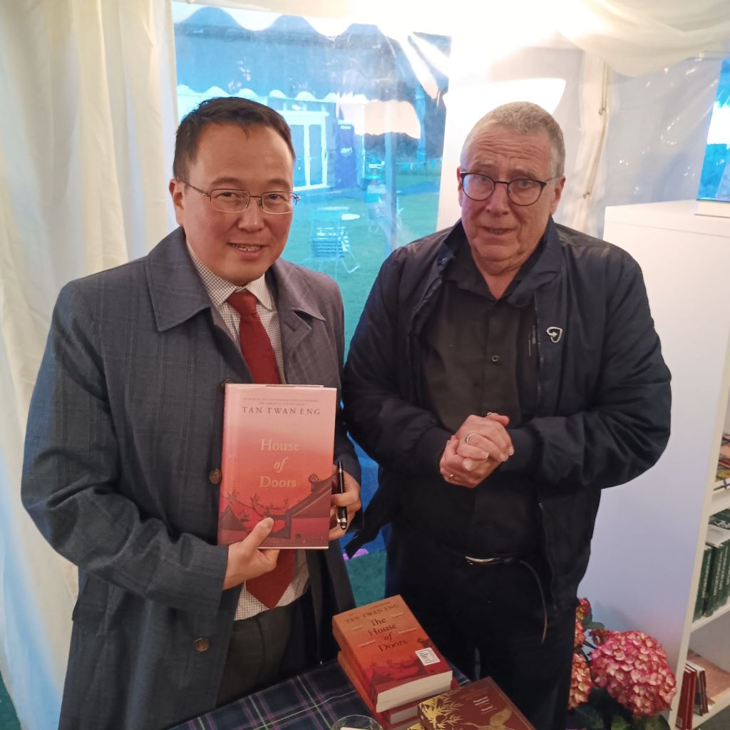 At 9 p.m I went to an event I was looking forward to and enjoyed immensely. In the photograph Twan organised for me afterwards yo can see my rather pathetic enactment of Uriah Heep humility, a sure sign of how overwhelming the event as. He spoke of The House of Doors (see my blog thereon at this link) and opened few doors on purpose. Twan had asked not to read from the novel and could not be urged to do otherwise, though he refused beautifully: ‘Reading is private’. I asked him to elaborate on the ‘arcane glyph’ in the novel but was told my question was a spoiler (mea culpa) and also learned that the publishers of the paperback had forgotten to put on the glyph (the glyph is mentioned in the novel, as you will see in my blog, at significant moments). He also spoke of his oeuvre to date constituting a Malaysian project which ends at his next novel. I panicked. I lost my copy of his beautiful first novel and have not read yer, his second one). another project for me then (before or after reading Dante’s Divine Comedy I wonder – lol)