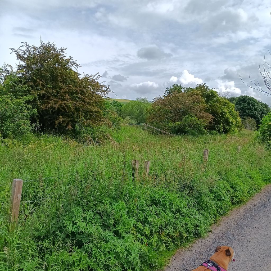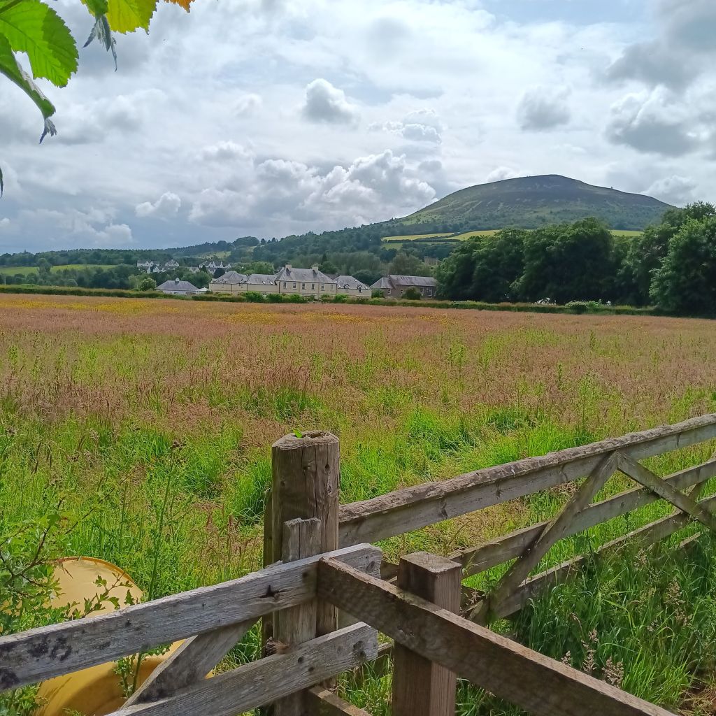 In fact, she suggested the theme. Daisy was a rescue dog and, though often bold, her usual response to life is fear, And She is on high alert taking pretend threats as nervously real ones, as if imagination always fed back into some trauma we don’t realise. We tried a beautiful walk at the Harestanes park just above the river Tweed north of Jedburgh, where we are staying. Soon after the walk, we met a family with five children who were having fun playing at being wild animals running through the wood. Daisy froze, tucked her tail between her legs, and would walk no further. Hence, we went on to Melrose for a walk higher up on the Tweed and in view of the Eildon Hills, beloved by Walter Scott.