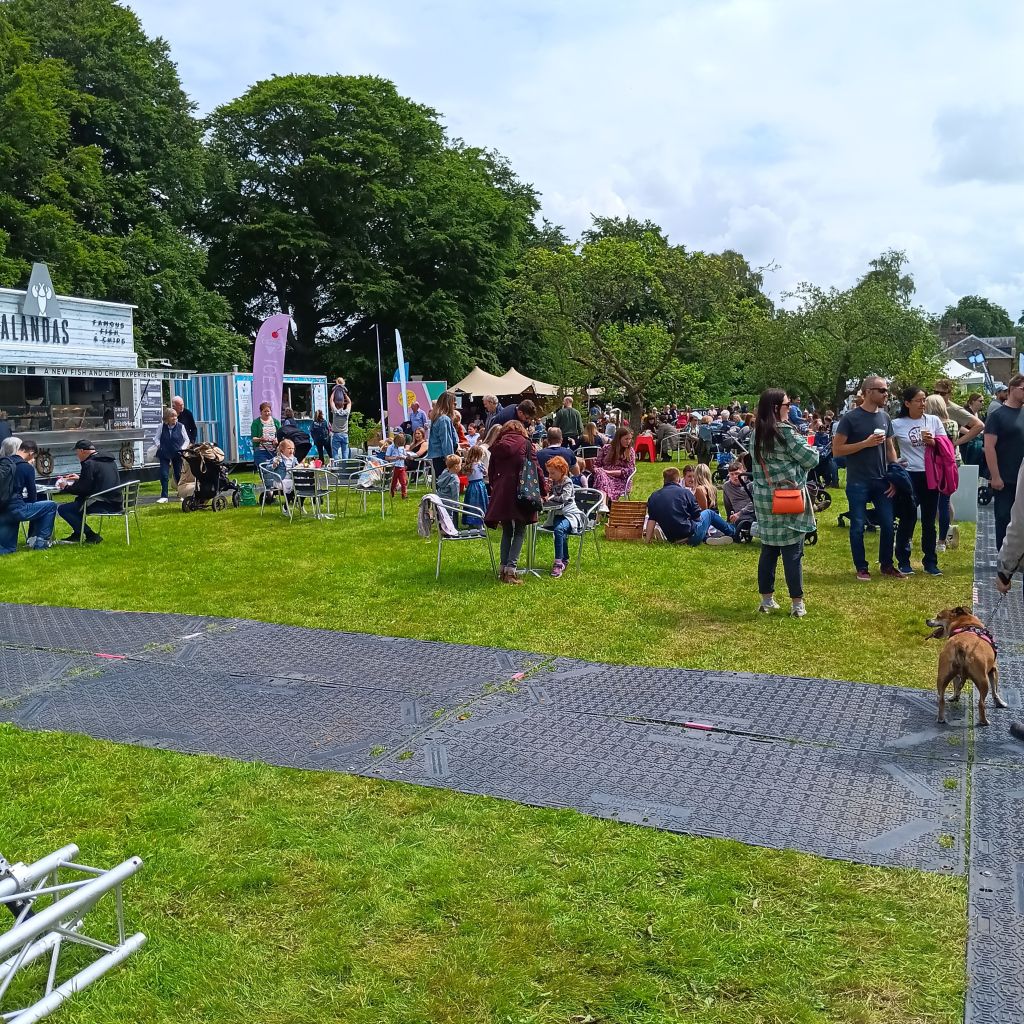 We walked the field path to the ‘Orchard’ field of the Book Festival estate, currently hosting some of its marquees and food tents and crammed with people. Daisy seemed overjyed by the crowds, as noisy as the family a Harestanes but not pretending to wildness.