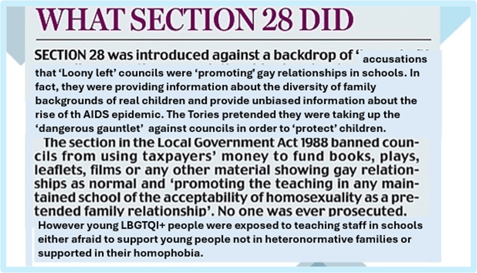 I remember Margaret Thatcher and her Section 28. It was a cruel tool used to implement hate and the mass cancellation of real lives