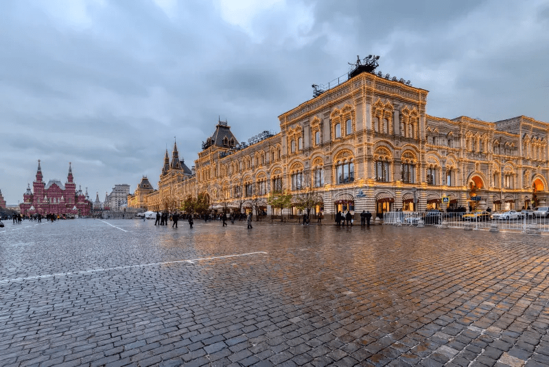 Of course, in Red Square, we saw the Kremlin and St Basil’s whilst declining to jump the queue of patient but obviously disgruntled Soviet citizens, at the privilege given to foreign currency bearing Western tourists, herded through by Intourist workers, to see Lenin in his tomb. But the memorable highlight was the GUM shopping mall over the square from the Kremlin, not only for its exterior but its interior of Soviet public manners and rituals: