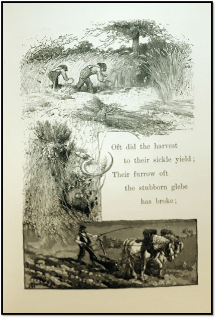 We too often read these lines lazily, Gray not being thought much cop as a poet, but take that word ‘leaves’. We leave things in our will to our descendants, or we ‘leave’ the stage of action in order to allow the entitled to their scene of either adventurous or passive glorious reflection. Whatever, the ploughman is so absorbed and shattered by his labour that he barely notices the leisured gentleman absorbing all of the world, including that he, the ploughman, has worked to contribute to the world, whilst the gentleman lives on the profit of either or both land and capital with leisure for sad but accepting reflection on the goodness of the status quo, even its inequalities of labour, remuneration and record of what we leave behind in our lives. If you read the George Eliot quotation again, you see that there too. I am sure she was aware of it – her fiction on reflecting from an achieved middle-class status back to the hardships of her family, the Adam Bedes of this world.
