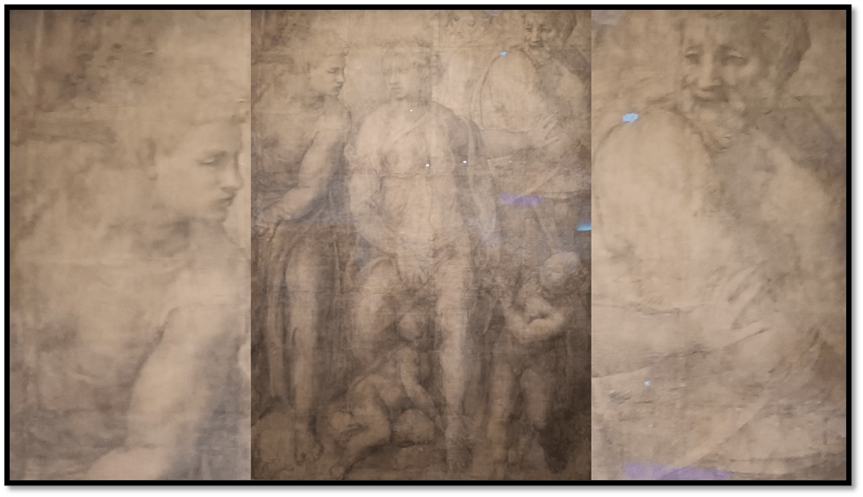 The final darkened room of reflective drawing that the curators argue were not intended for public gaze but for the artist’s devotions are important and I loved that room. If we compare it to the public statements of devotion related to his relationship to the saintly Vittoria Colonna, there is much to reflect upon, as Jones should have reflected on the body soul and the function of the gaze upon icons.