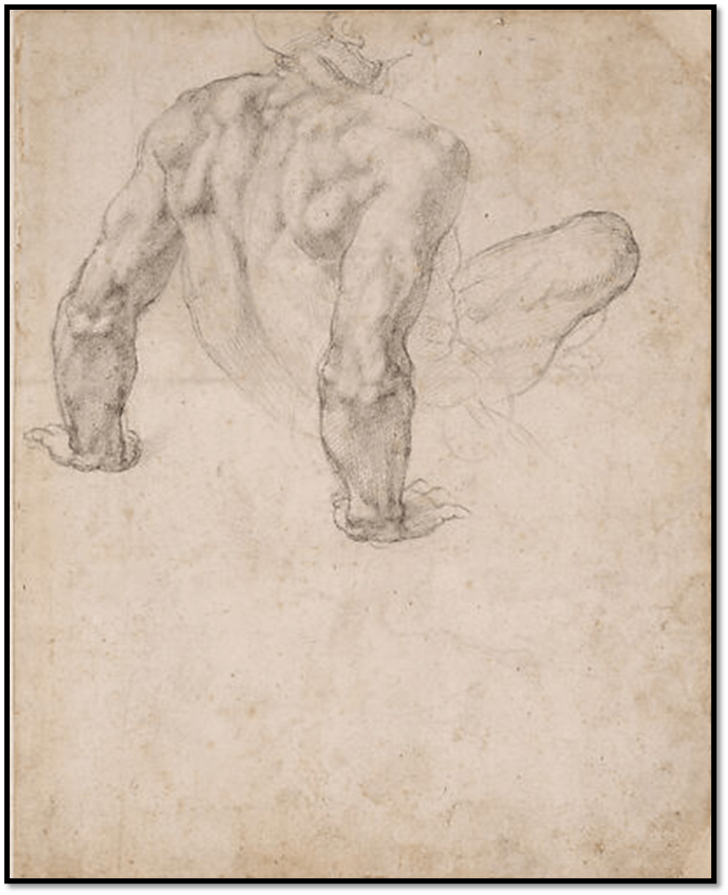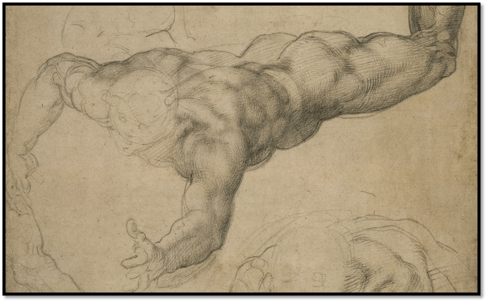 In that blog post, I illustrate how at least two critics of the show make much of its suppression, as they see it of Michelangelo’s concern with the human body and the human male body in particular. Even if you Michelangelo’s male nudes not to have a component of sexual desire, most still agree that they inevitably invite responses that simulate what the eighteenth century art theoretician, Winckelmann, speaking of classical Greek art, called the ‘haptic gaze’. In conversation with Microsoft Bing Copilot, I asked the application how it might extend that concept of Winckelmann’s to how we apprehend the art, particularly of the nude to, because it is relevant Michelangelo’s on the wall of the Sistine Chapel The Last judgement. It replied: