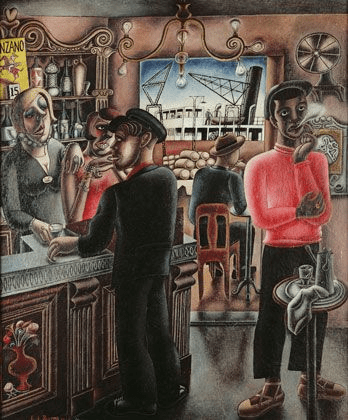 As if sailors, with a nouveau riche background were not enough, Monica also mentions ‘Joe’, a stereotypical working-class sobriquet, possibly of a soldier in the army serving in the Empire and living in India. He met him, says Monica, in the South of France (Marseilles being notorious for such meetings – see the work of William Burra exampled below – but it is clear that, though he says ‘Joe was wonderful’, it was likely that he does not remember him precisely since he also says he is ‘dark green and comes from Madras’. Even the mention of the South of France only raises from Garry the witty retort: ‘I do get about, don’t I?’ [9]