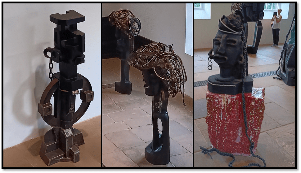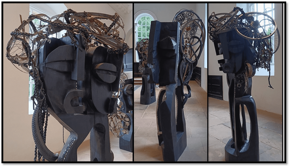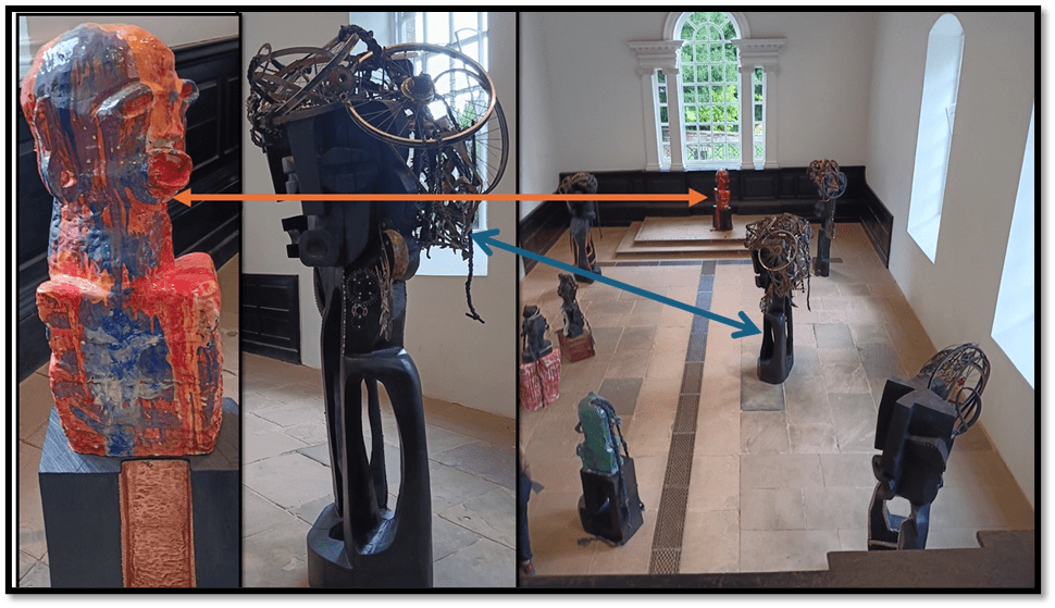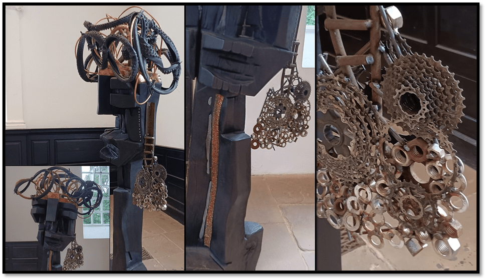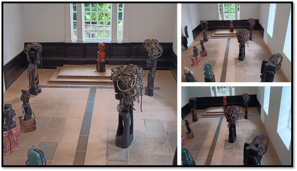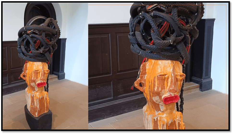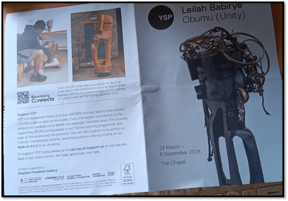 Leilah Babirye, showing some of her work currently in The Chapel at Yorkshire Sculpture Park (YSP) is creating an art of resistance from her experience of growing up queer in Uganda. She uses ‘items found on the streets, such as tyres, cans, and scrap metals’ in the words of Melis Dumlu. Dumlu goes on to say this practice ‘echoes the prejudiced slang for a gay person in the Ugandan language – “abasiyazi” – which is a section of the sugarcane husk that is removed as rubbish and thrown out’.[1] This blog on the sculpted art of Leilah Babirye is from a series of blogs on a day visit to see the art in exhibitions at the Hepworth in Wakefield and The Yorkshire Sculpture Park at Bretton Hall Country Park. This is number 2 of 6.
