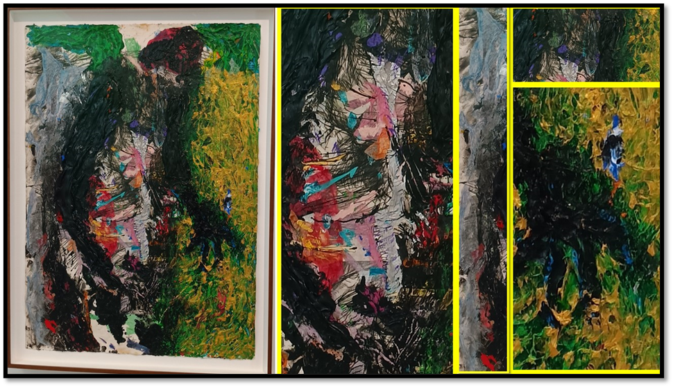 But impasto techniques are beautiful and meaningful in even more relatable and realistic figures in paintings that span both French impression and German expressionism. I do not know the artist of the painting detailed on the left but here the isolation of the old man seems captured expressionistically in the impression given of the absence of light or its variation, and the poignancy of messaging in the shadows falling on a door – shadows which might be stains. The man is faceless.