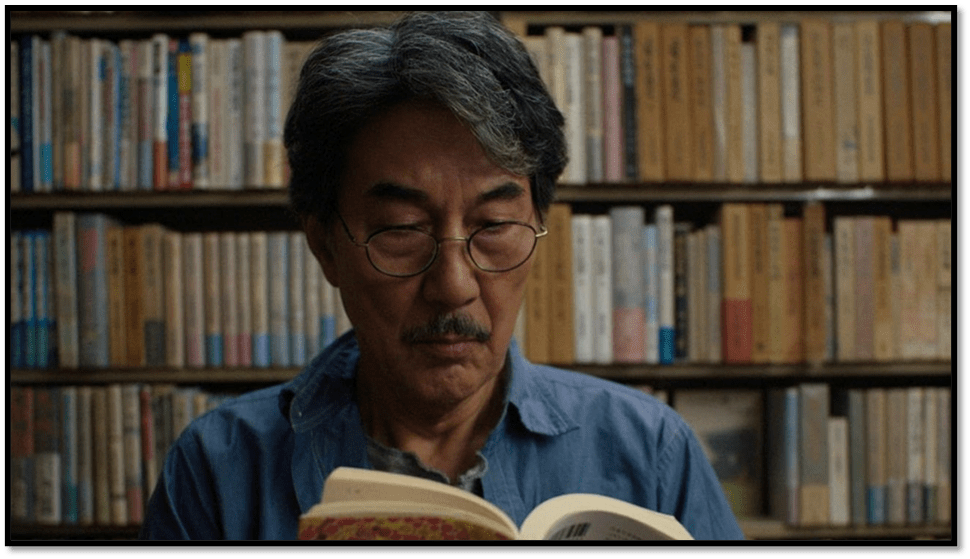 Meanwhile, when attending to people, relationships, and objects, he attends to second-hand books he reads and collects in his room recommended by a lonely bookseller.