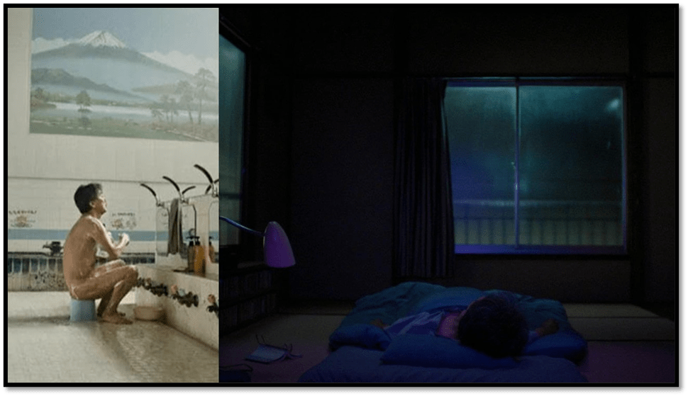 However Hirayama is no inclined to look at such evidence as justification for a ‘dreary’ life however unvisited or unattended to he may be, for his own attention to others is his secret. Nevertheless, the lighting and dilapidation might evocation dreariness from another even without the early morning routine of cleaning up in service to others: