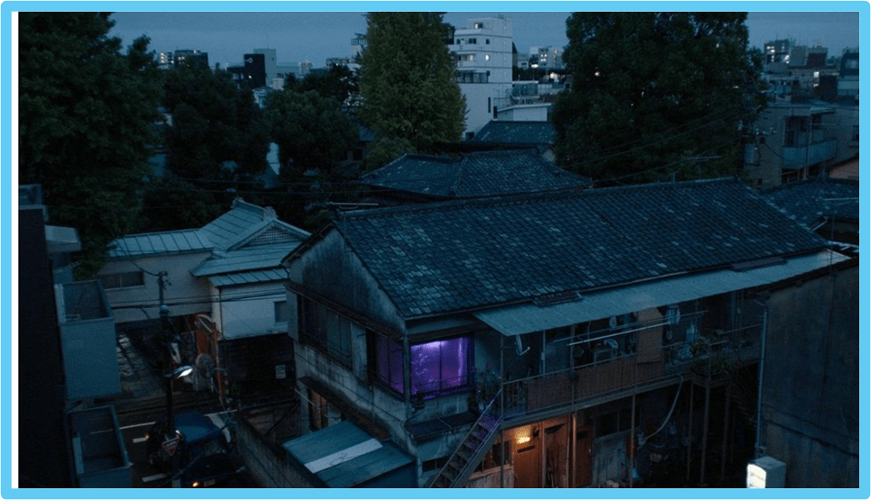 Surely the same is true of the brilliant cinematography, which is often offering a ‘reverse angle’ shot but from the perspective of a literally heightened imagined perspective we’ll above the city, perhaps from the Skytree Tower, which is such a feature for everyone in the film. Reverse angle your imagination from the building below then: