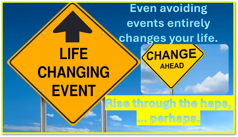 However, I sense an earlier history is important since the root ‘hap’ is also fundamental to the word, happen, happening and mishap. The late fourteenth century etymology forces this root to associate with ‘good fortune’ or ‘positive event’, yet examples of hap from the thirteenth century stress chance, fortune, fate, do not imply that these things are necessarily and always positive in effective – here again Etymonline.come on hap from the word mishap.