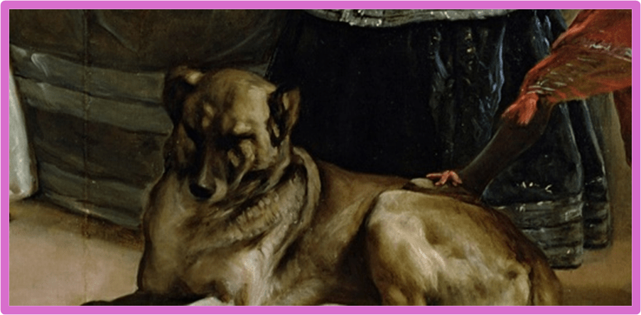 Lots of viewers focus on the dog in Las Meninas, but do it rather guiltily, for isn’t this rather too sentimental a subject when the demands of Imperial Kings and Queens, heiress Infantas, suspicious courtiers at rear doors and the King’s own painter in Especial, who after all painting this picture of him painting another picture.