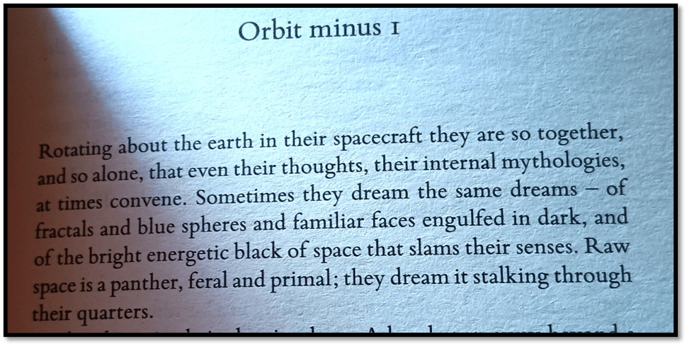 2 thoughts on “‘Call up’ that object, ‘the earth’ and make out of its silence otherwise on the page ‘thunder and music’. This is a blog on Samantha Harvey (2024 paperback ed.) ‘Orbital’.”