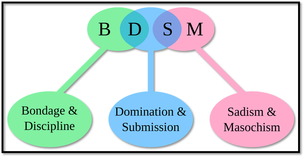 If his misogyny had roots in role-play, so too had his views about BDSM. As McMillan suspects with Nott, the personal preference for this set, in theory, at least of networked practices and interpersonal behaviours (illustrated in the helpful Wikipedia sourced graphic below) may have extended no further than dressing in and sexually playing with leather.