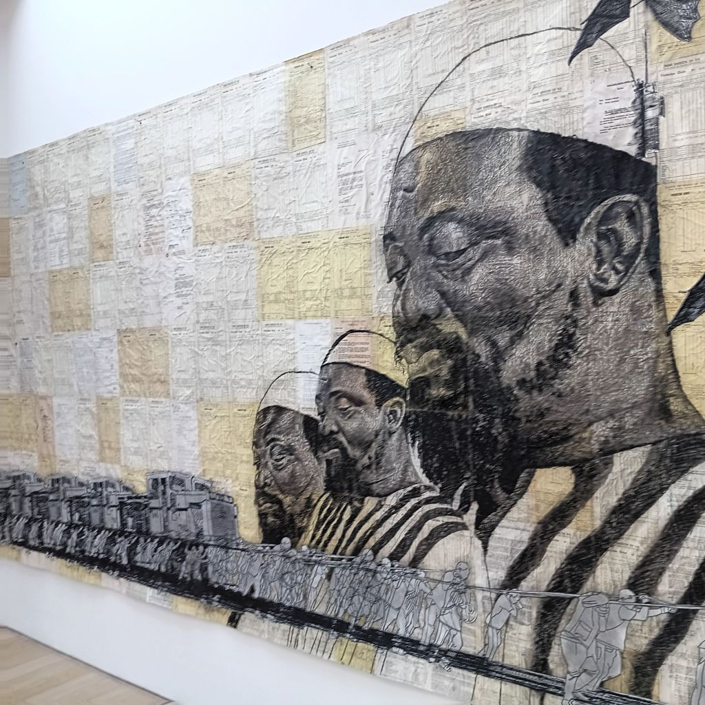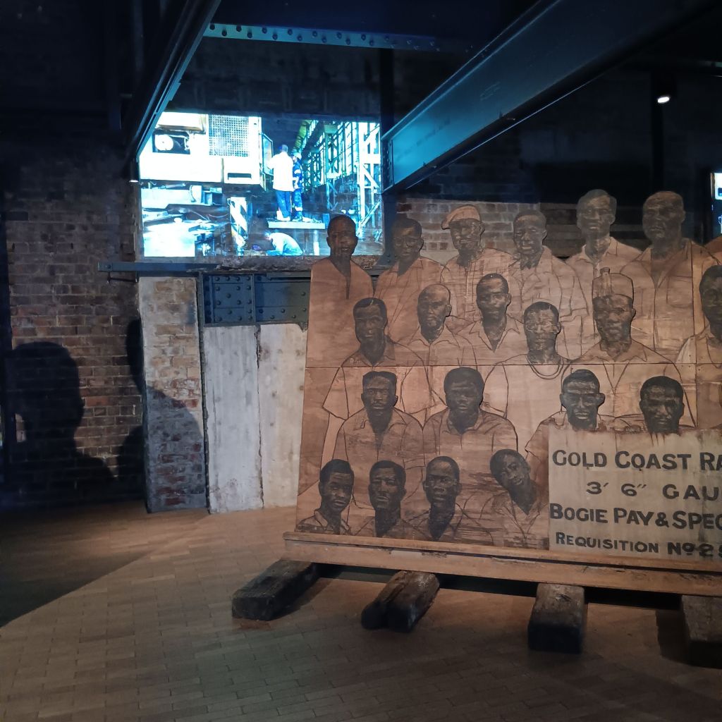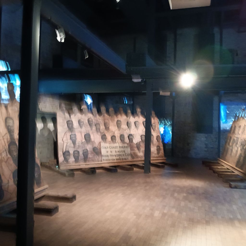 There are stunning truths here, even if you confined yourself to the brilliantly curated Warehouse in which you wander around the heavy sculptural flats mounted on railway sleepers showing the faces of labouring men and women from the past and the shadows they cast on walls, interrupted by video loops of modern manual work in modern day. Ghana. Visually, it is such an exciting exploration; perspectives on it changing as you turn each corner, sometimes into dark alleys or backtrack on yourselves.