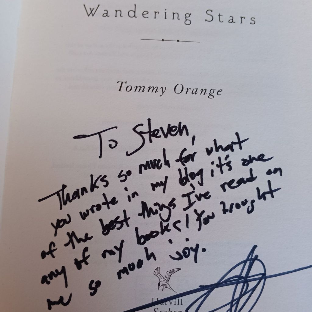 Tommy Orange answered beautifully. I felt that so much could have been uncovered, yet this was the most satisfying author talk I have ever attended. I was so buzzing when I attended the author tent that I forgot to ask for a live photograph. I asked if Tommy would accept a hard copy of my blog on him, and he did, and that made me happy (access this blog with this link). When he saw it, he told me with an obvious sense of surprise at the coincidence, he said it had already been sent to him by Kaveh Akbar. Thank you, Kaveh, for I do not know you except in your fine work either.
