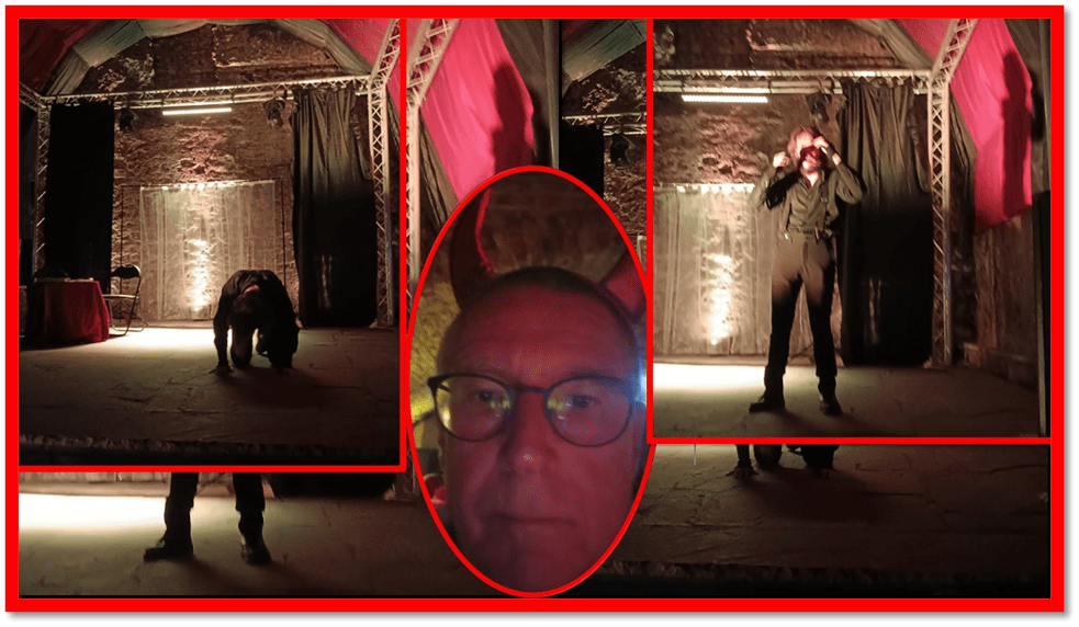 The audience here, as well as in Canada could wear ‘party’ devil-horns if they wished to show willingness to be called upon the stage. Of course, to my later chagrin, I did.