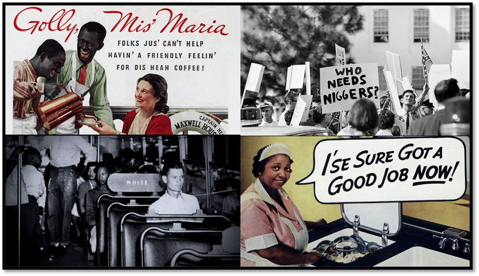 Hate and smug ownership of one’s belief that Black people are happy and contented merely servicing White entitlement, the film’s illustrative clips and slides continually show, oft without commentary. The aim is by the constant barrage, the soul of White people might be shaken to see itself in a ‘glass darkly’, before going on to see Black People face to face, even James Baldwin, whom they deign to like for his talent.