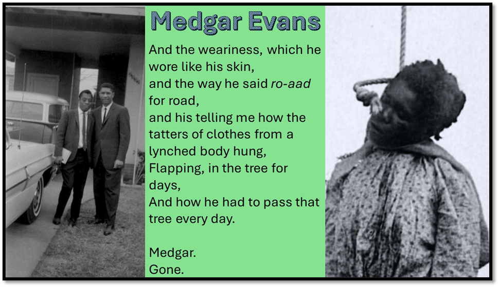 And Baldwin became a face recognised on TV as well as in a crowd, as the film shows us, and the stills above attest to. Medgar Evers is the most personal portrait in the film and extant text, his memories the most searing. I struggled with whether to include one of the pictures in the collage below, but in the face of White denial in the US, and of racists in the UK I have.