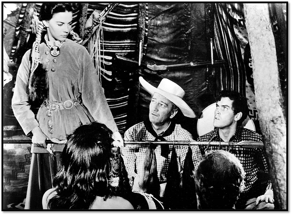 Baldwin oft illustrates this through the iconic figure of John Wayne who helped treat genocide as if it were the White Man’s Right. Show John Wayne with his gun aimed to the side of you, as a clip in this film does, ‘you’ can be certain if you are White that it is aimed at an ‘alien’ human, whose home you appropriated, to rescue you from retribution you personally don’t deserve, for we’ve ‘made a legend out of a massacre’. The Black man knows it is aimed at him. What John Wayne celebrates is that: