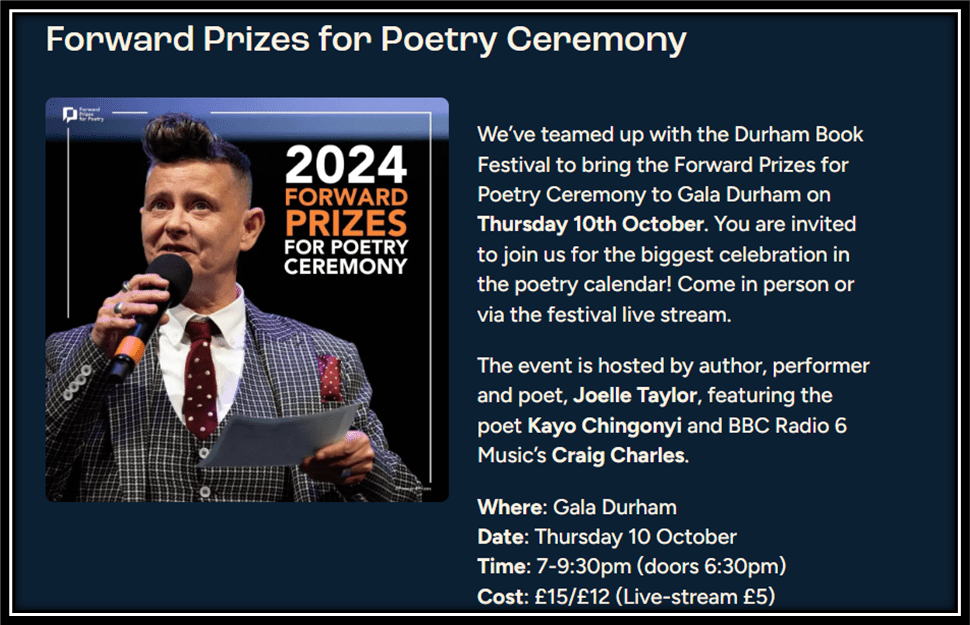 The Forward Prizes for Poetry are an unmissable fixture in the literary calendar – a celebration for all who want to discover the best contemporary poetry. This year, Durham Book Festival is delighted to host the announcement of the prizes for the first time.