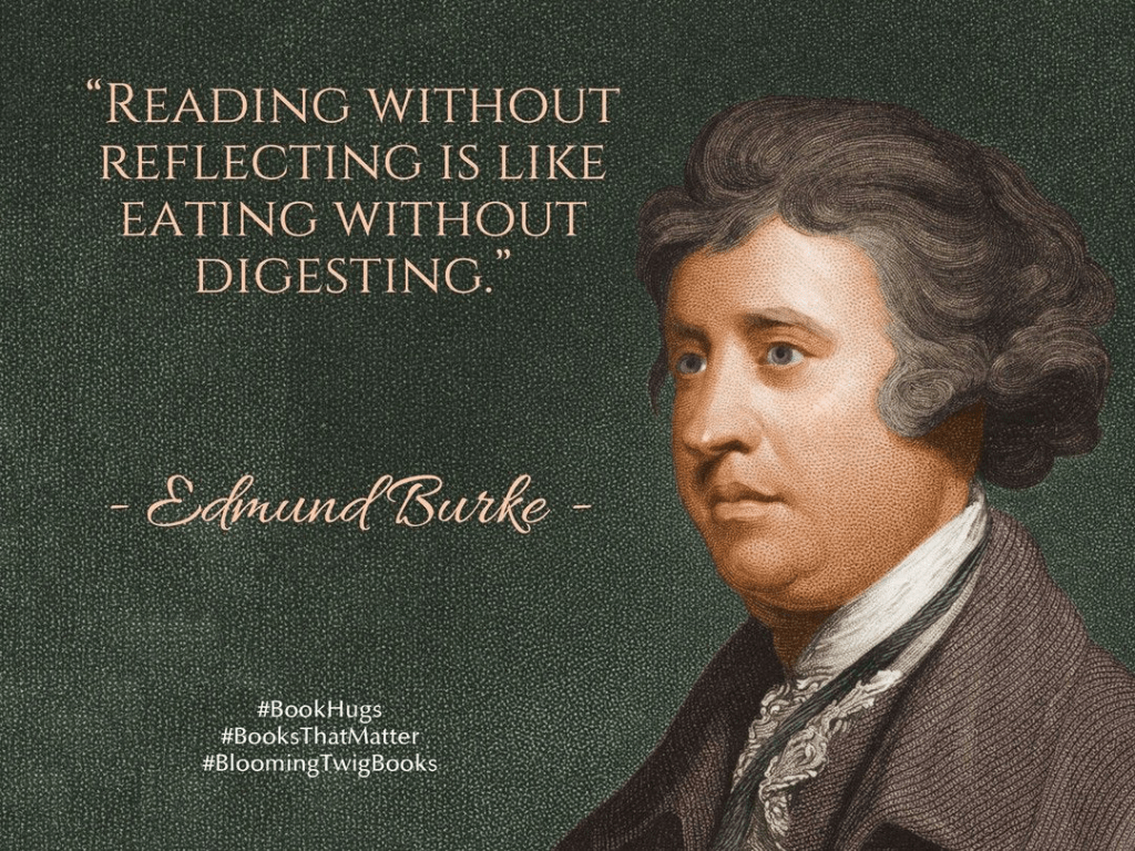 EDMUND BURKE is supposed to have said: ‘Reading without reflecting is like eating without digesting’. The attribution though is not, as far as I can find as yet traceable to any source and like many of these attributions possibly apocryphal, and perhaps inaccurate. Burke, the famous eighteenth-century Tory philosopher and statesman, is known for undermining popular assumptions with dour reflection; as in his Reflections on the Revolution in France, aimed at stemming the radical fervour raised by the works of Thomas Paine. Revolutions lead, Burke reflected to anarchy and then tyranny. it is largely supposed that the career of Napoleon in France proved Burke right.To him ‘reflection’ means turning the froth of hastily written thought into substance that as a practical use – in sustaining you. For Burke that meant sustaining the ‘status quo’ too.