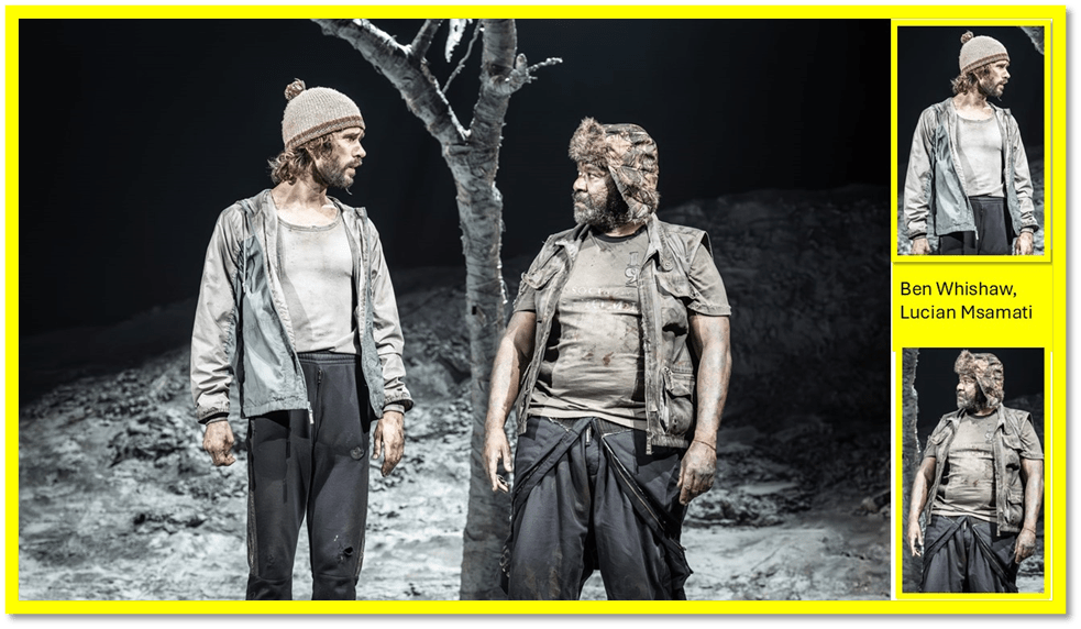 Here the look, if not the words, are updated. Vladimir (Whishaw) and Estragon (Msamati) are not picturesque stage tramps but recognisably homeless men in shabby anorak and overalls, suffering the privations and ailments that rough sleeping leads to. / ….